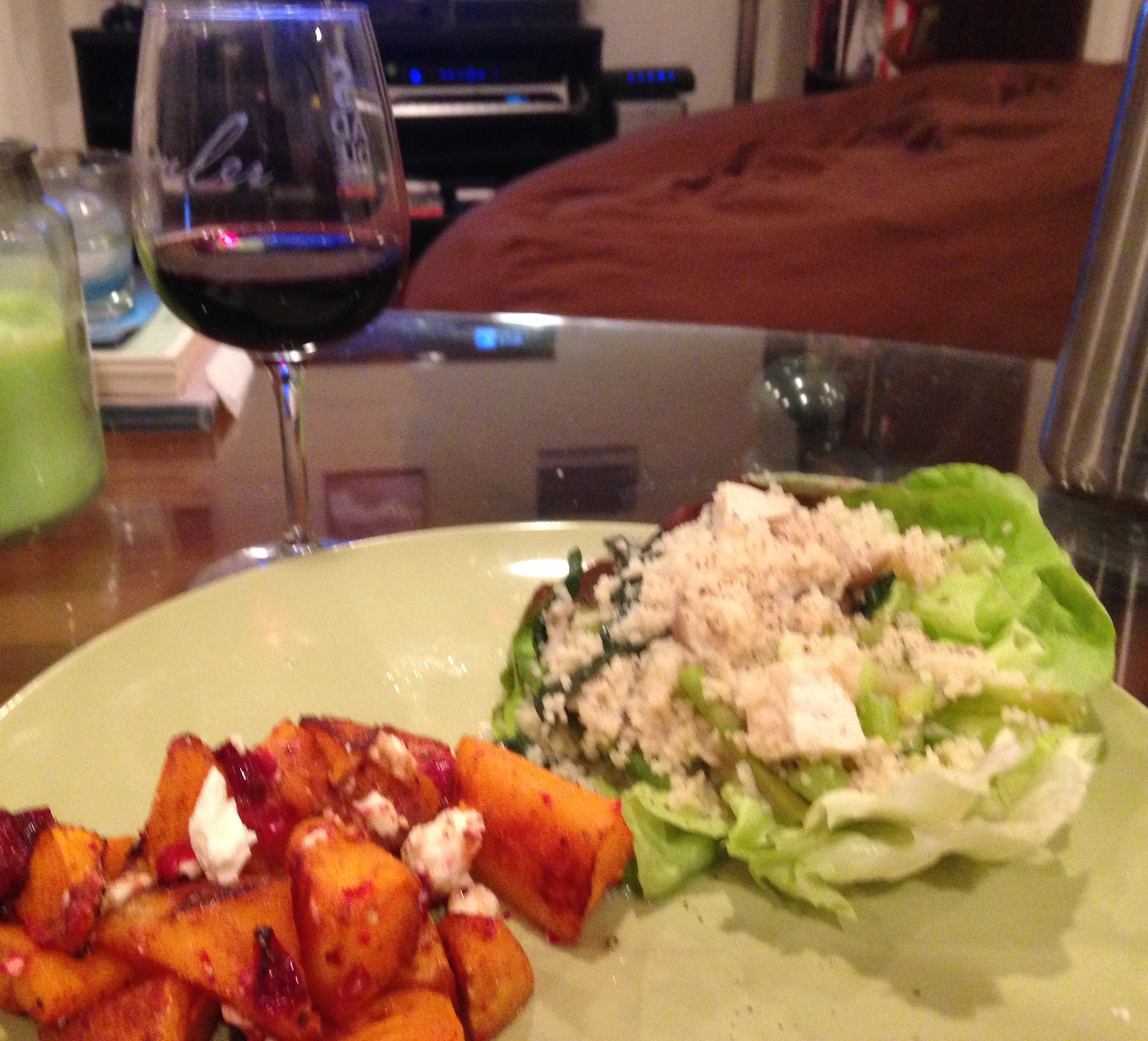 * I served with whole wheat couscous, extra veggies and tofu + garlic, butter (we use, Melt), sea salt, pepper & red wine!
